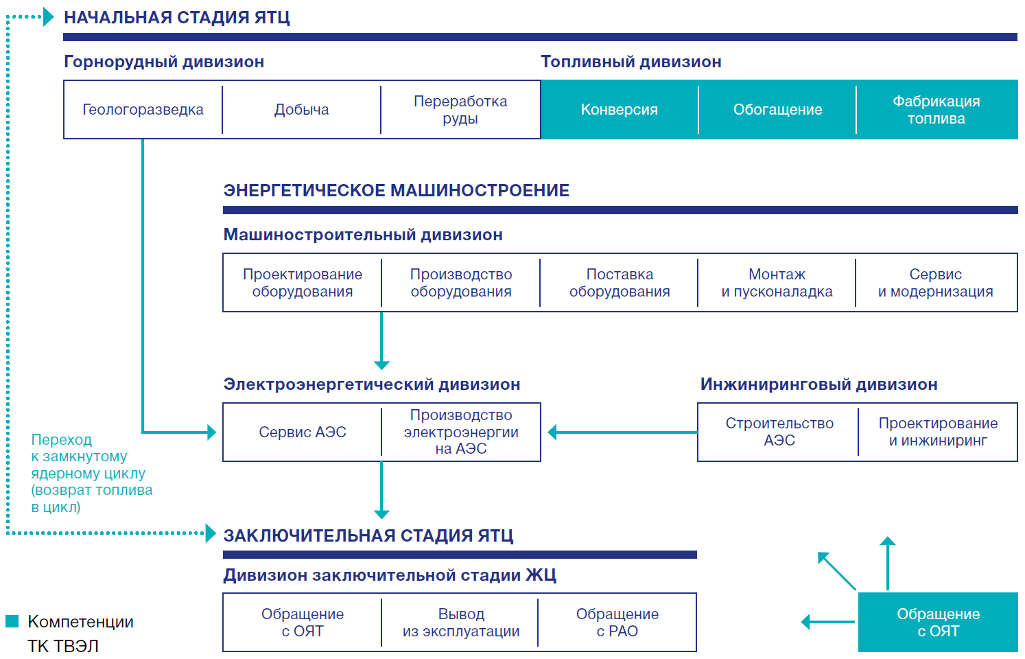 Основными видами деятельности Компании являются обогащение урана; разработка и производство газовых центрифуг и оборудования к ним; разработка, производство и реализация (включая экспорт) ядерного топлива, а также выпускаемой на предприятиях топливного дивизиона неядерной продукции.