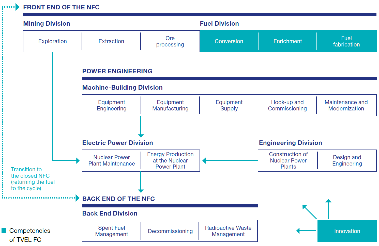 The core areas of activity of the Company is uranium enrichment; development and production of gas centrifuges and the associated equipment; development, fabrication and sale (including export) of nuclear fuel, and non-nuclear products manufactured at the enterprises of the fuel division.