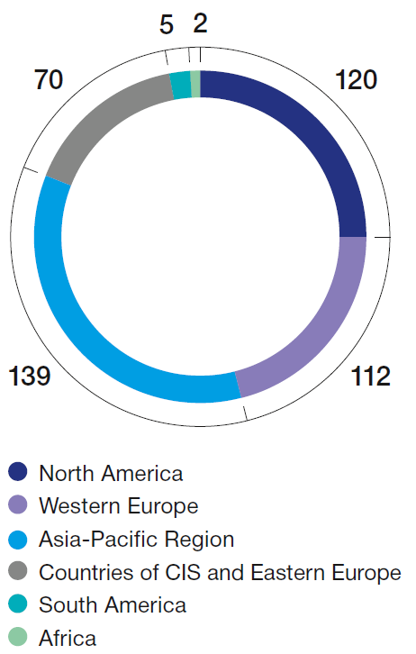 The majority of operating power units are located in Asia-Pacific region, North America and Western Europe. At the moment 57 power units are under construction in fifteen countries, including seven in Russia.