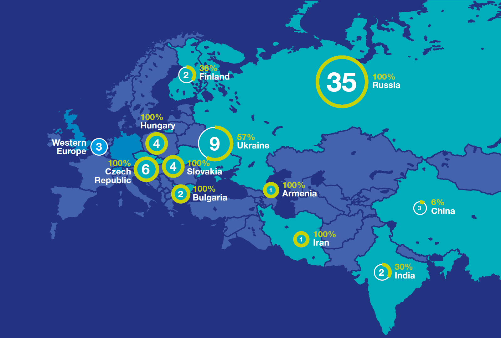 Number of reactors running on Russian-made fuel, ea. | 72 |