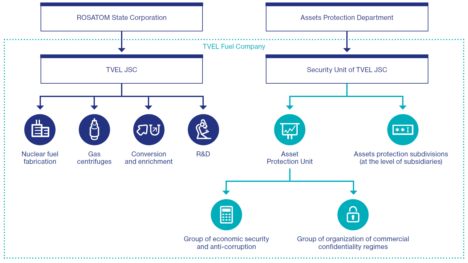 - the security unit (at the level of TVEL JSC), including Asset Protection Unit comprising the group of economic security and anti-corruption and the group of organization of commercial confidentiality regimes and For Official Use Only;