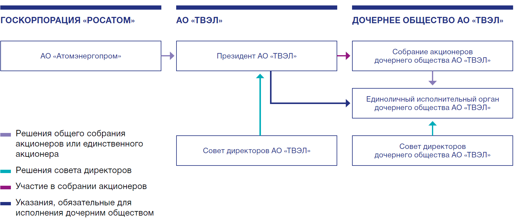 Органы управления АО «ТВЭЛ» сформированы в соответствии с Уставом АО «ТВЭЛ».