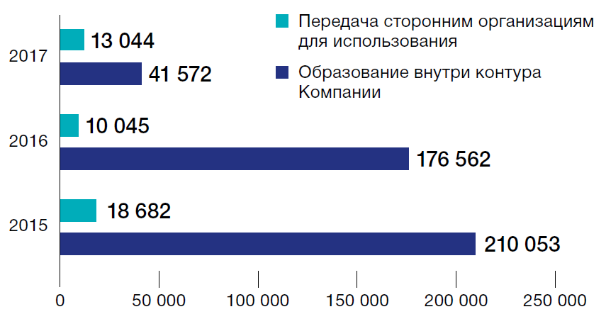 В 2017 году общее количество отходов производства и потребления предприятий Компании было снижено на 76,5% относительно уровня 2016 года и составило 41,6 тыс. тонн.