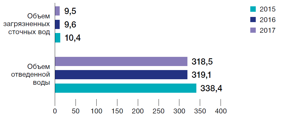 В 2017 году объем водоотведения загрязненных сточных вод предприятиями Компании сократился на 1% в результате уменьшения забора воды.