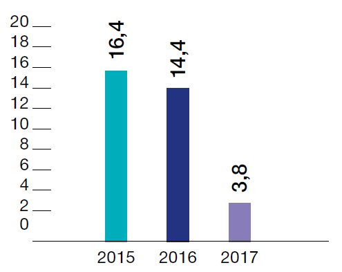 Разница в процентном уменьшении по сравнению с 2016 годом объема забора воды и объема загрязненных сточных вод обусловлена тем, что ряд предприятия Топливной компании ТВЭЛ осуществляют приемку сточных вод от сторонних организаций.