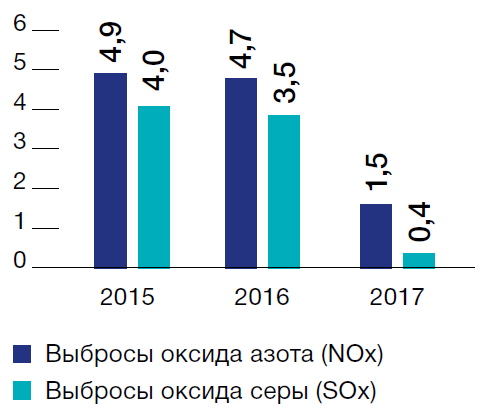 Суммарные выбросы загрязняющих веществ в атмосферу предприятиями Компании в 2017 году составили 3,8 тыс. тонн (7% от установленного норматива).