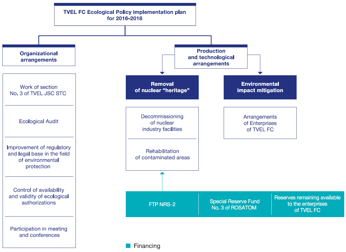 Funding of production and technological arrangements for environment protection is scheduled under TVEL Fuel Company´s Ecological Policy Implementation Plan, Environmental Objective Achievement Program and investment and project activities of TVEL Fuel Company and ROSATOM State Corporation. Each action, prior to its inclusion in investment projects, is assessed at the meeting of the Investment Committee of TVEL JSC in terms of feasibility and effectiveness of final result.