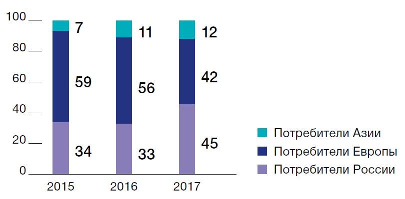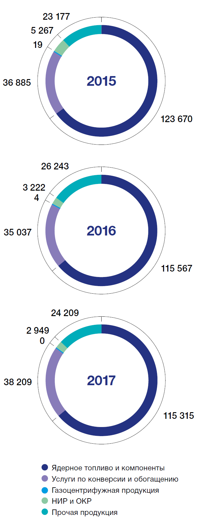 В 2017 году выручка от реализации ТВС составила 106 806 млн руб, ее доля в общем объеме выручки составила 59%. Основные потребители – российские АЭС и АЭС Европы. Растет доля потребителей из стран Азии.