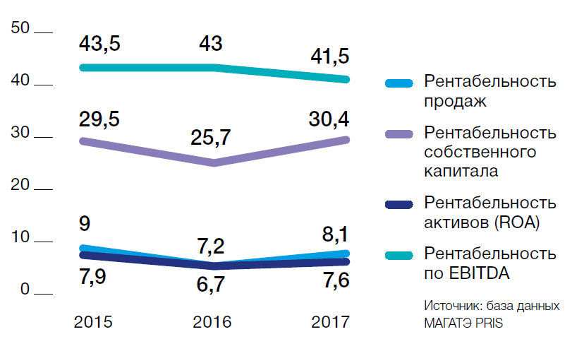За счет роста валовой и чистой прибыли в отчетном году заметно увеличились показатели рентабельности продаж, рентабельности собственного капитала и рентабельности активов.