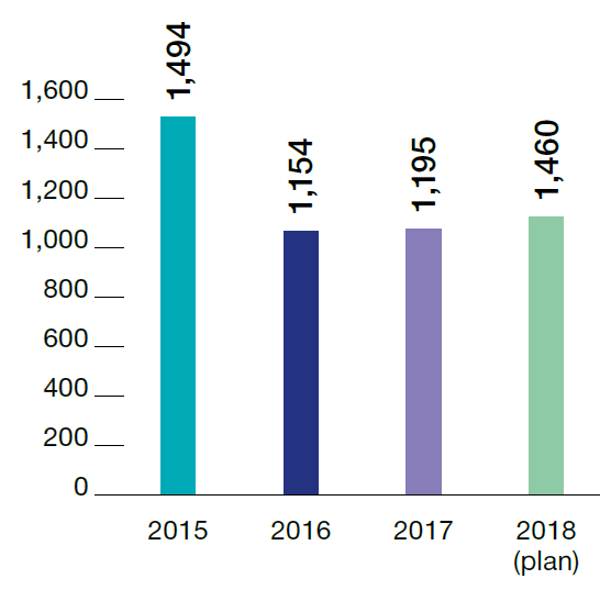 Total amount of investments in construction of PDEC objects in 2017 made nearly RUB 2.6 bln.