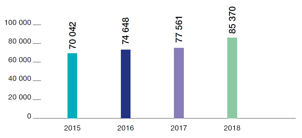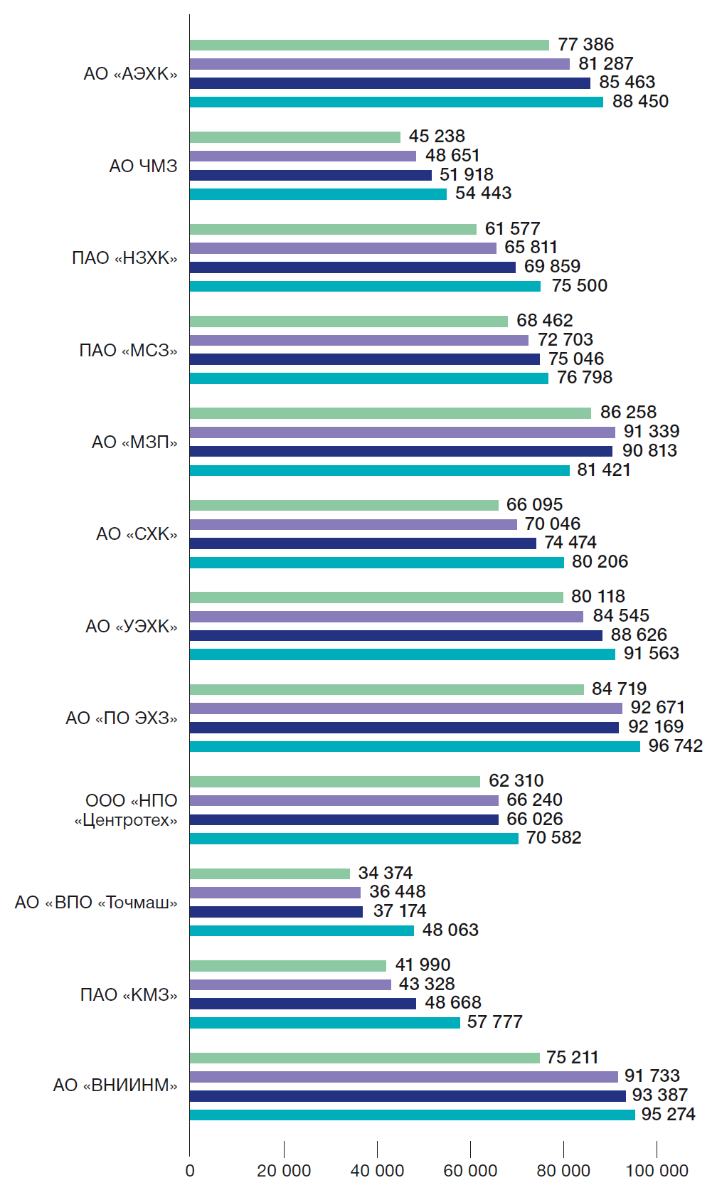 Средний уровень заработной платы по Топливной компании ТВЭЛ (без АО «ТВЭЛ») составил 77 561 руб., что на 4% выше, чем в предыдущем году.