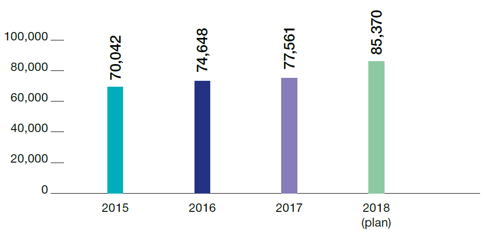 The average salary level in TVEL Fuel Company (TVEL JSC not included) made RUB 77.561 which is 4% higher than in the previous year.
