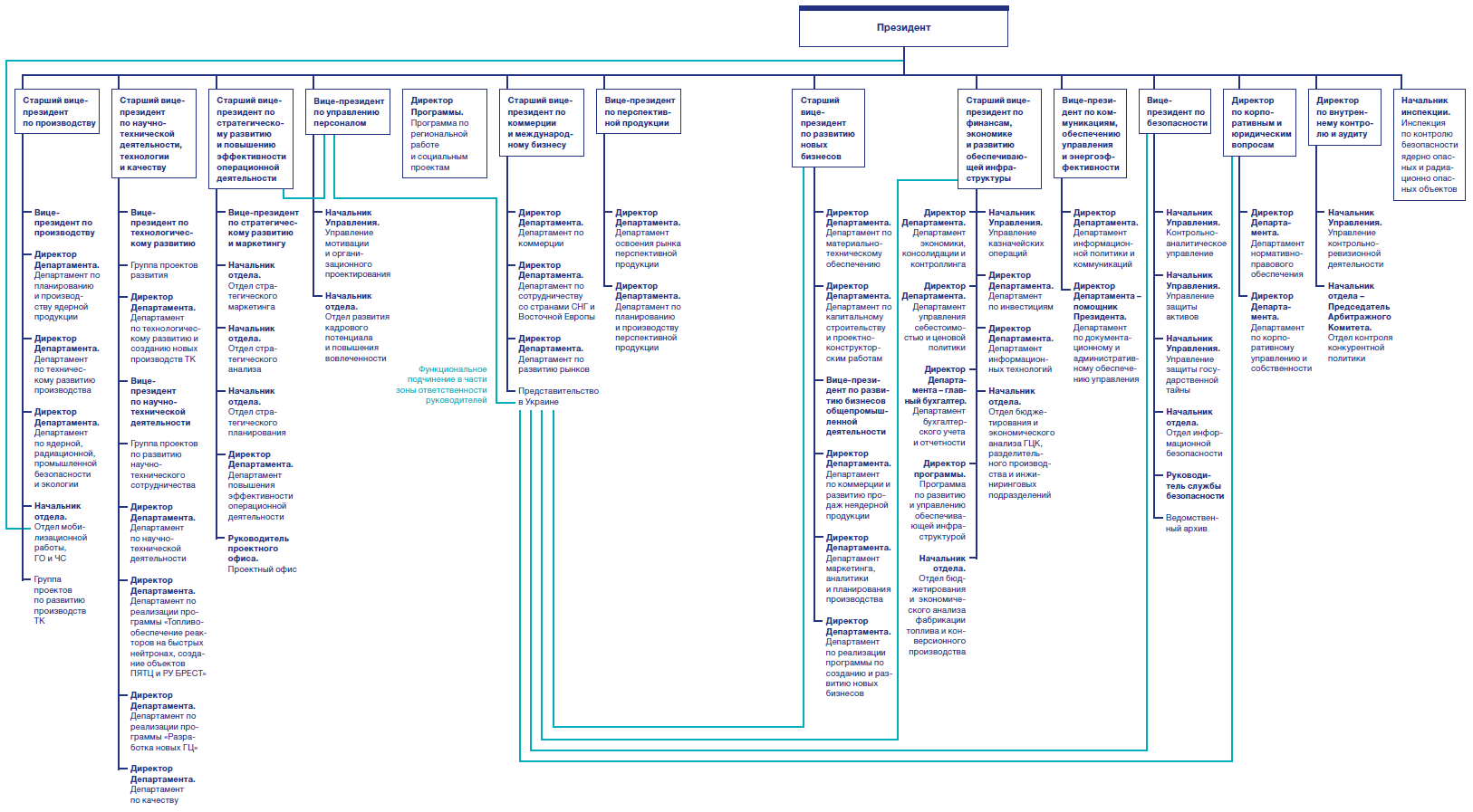 Так, в организационную структуру АО «ТВЭЛ» введены должности Вице-президентов по развитию новых бизнесов и технологическому развитию.