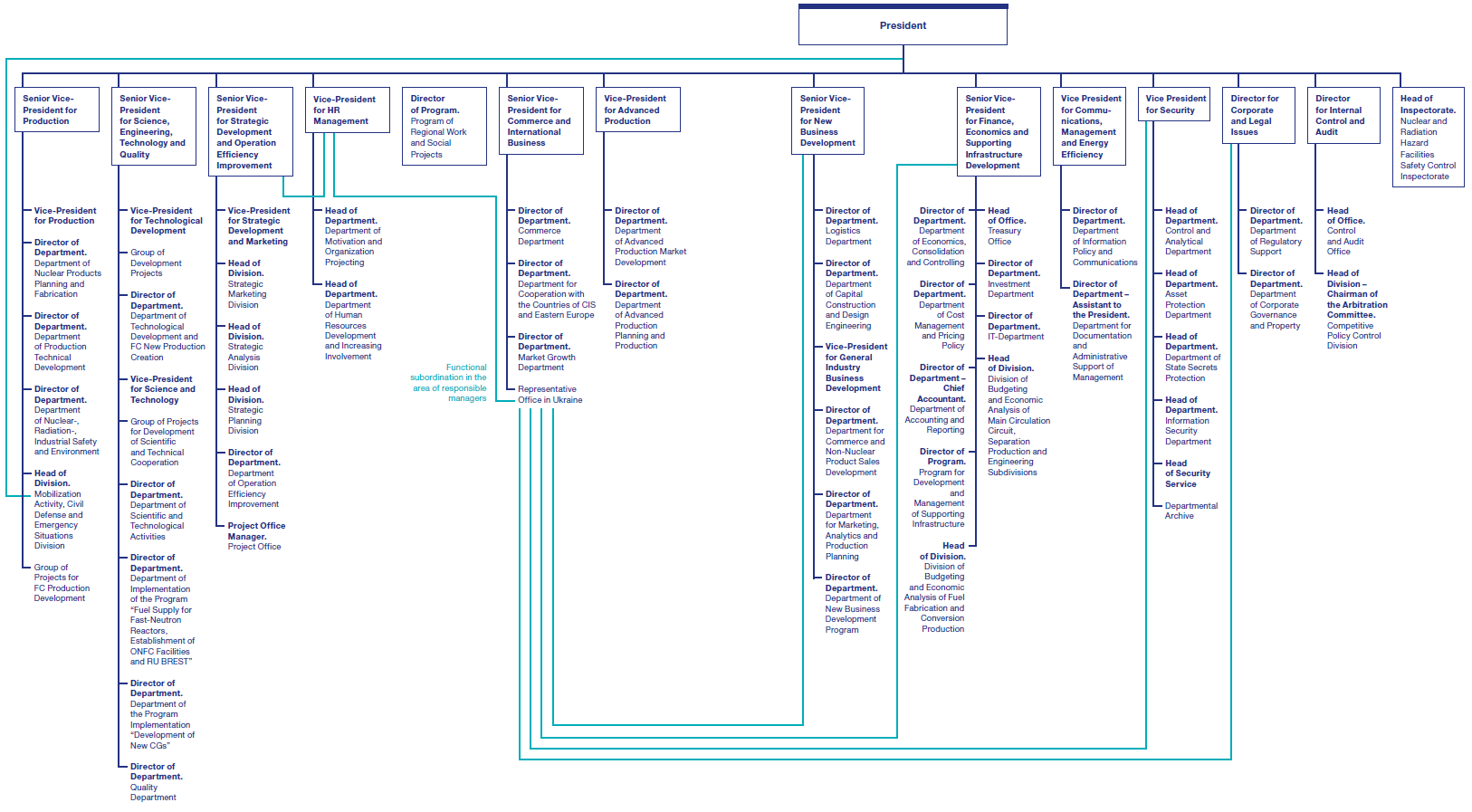 In 2017, TVEL Fuel Company focused on the implementation of the strategic goal for development of the second core of business - formation of a mechanism for managing the creation of new non-nuclear products and their promotion to the market. Within the framework of this direction, there have been changes in the organizational structure of TVEL Fuel Company with the aim of creating a more effective system for managing the development, production and sale of products of general industrial activity.