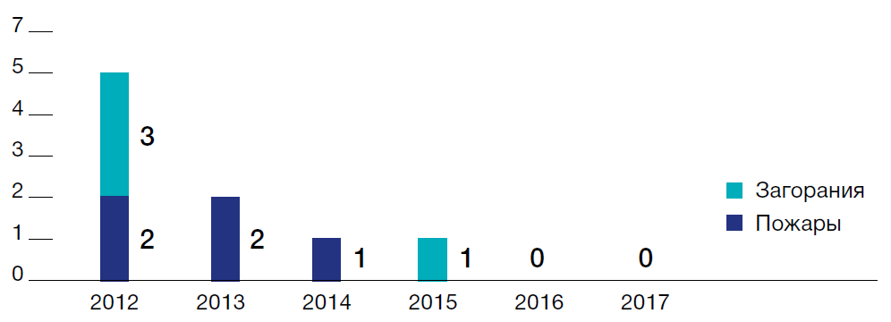 Проведение организационных и технических противопожарных мероприятий позволило не допустить пожаров на промышленных площадках предприятий и продолжить тенденцию общего снижения их количества с 2012 года.