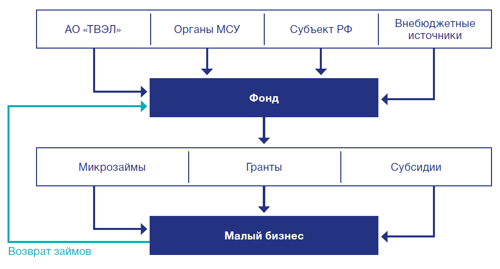 В 2013 году на условиях софинансирования с органами местного самоуправления и органами государственной власти субъектов РФ на территориях присутствия Компании начали свое функционирование Фонды развития и поддержки предпринимательства. Фонд выдают займы, гранты и субсидии субъектам малого и среднего предпринимательства (МСП) на создание новых рабочих мест, развитие новых производств, участие в выставочно-ярмарочных мероприятиях и деловых миссиях.