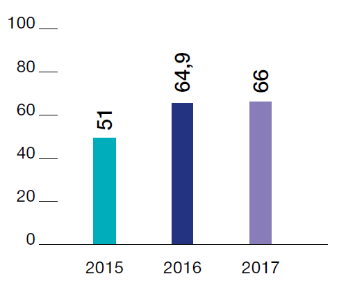 В 2017 году в Компании уже не первый год успешно функционирует система ежегодной оценки эффективности деятельности персонала*. Оценка строится на основе соответствия сотрудника корпоративным ценностям и требуемому уровню профессионально-технических знаний и навыков.