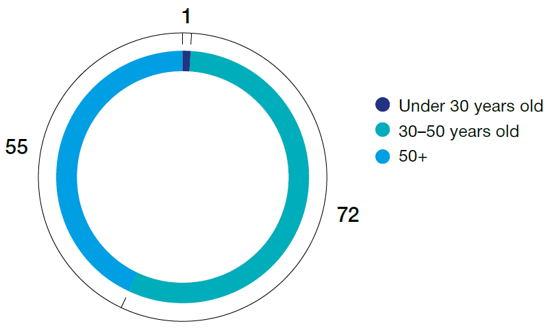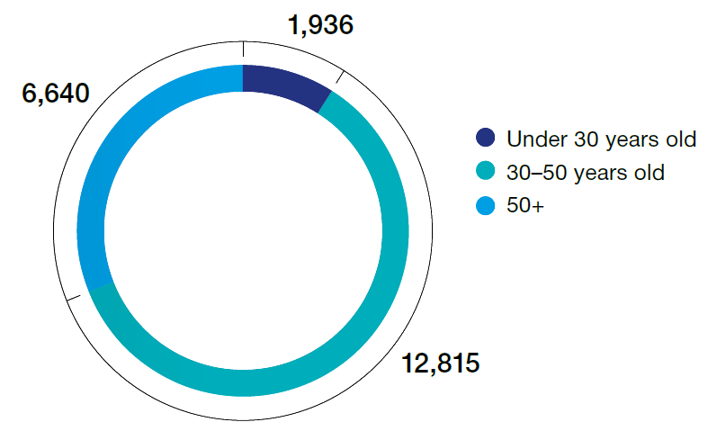 Major part of the employees are men (65.4%)*. Average age of employees of the Company is 42.6. The employees under 35 years old comprise 21.9% of total staff.