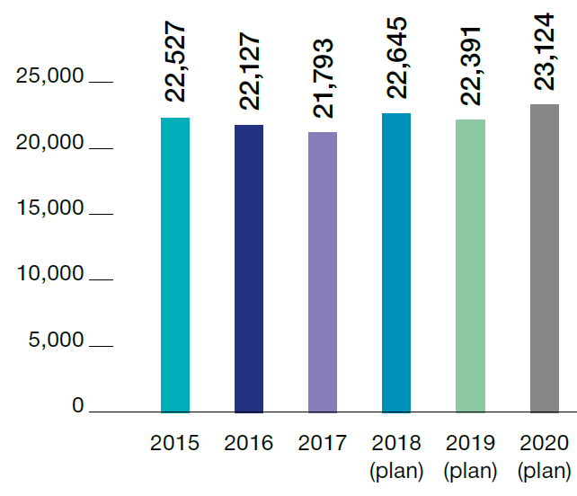 Average staff total | 22,527 | 22,127 | 21,793 | 22,391 |
